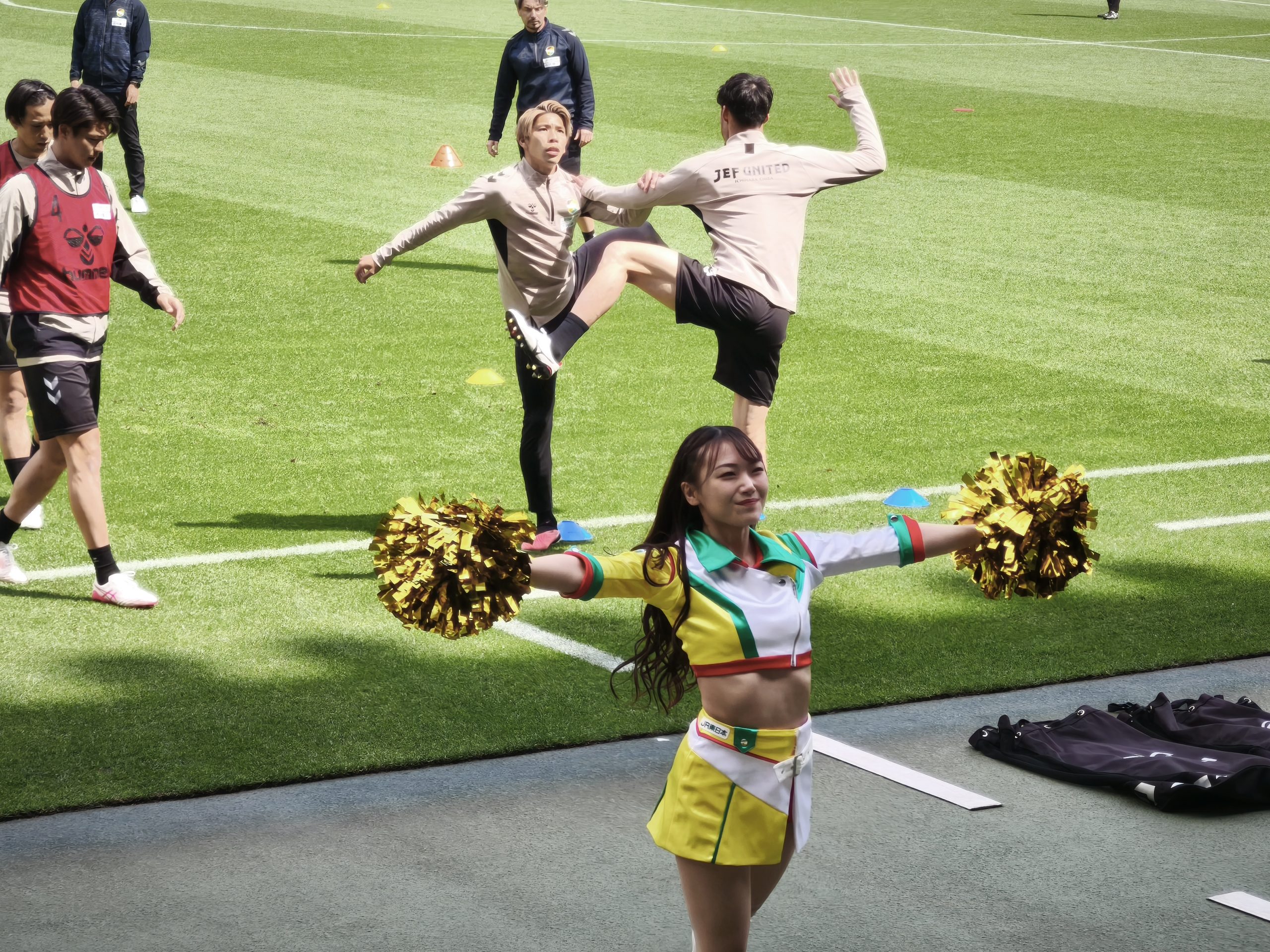 フクアリの芝生を眺めながらのんびり過ごしていたら選手たちのアップが始まりました!