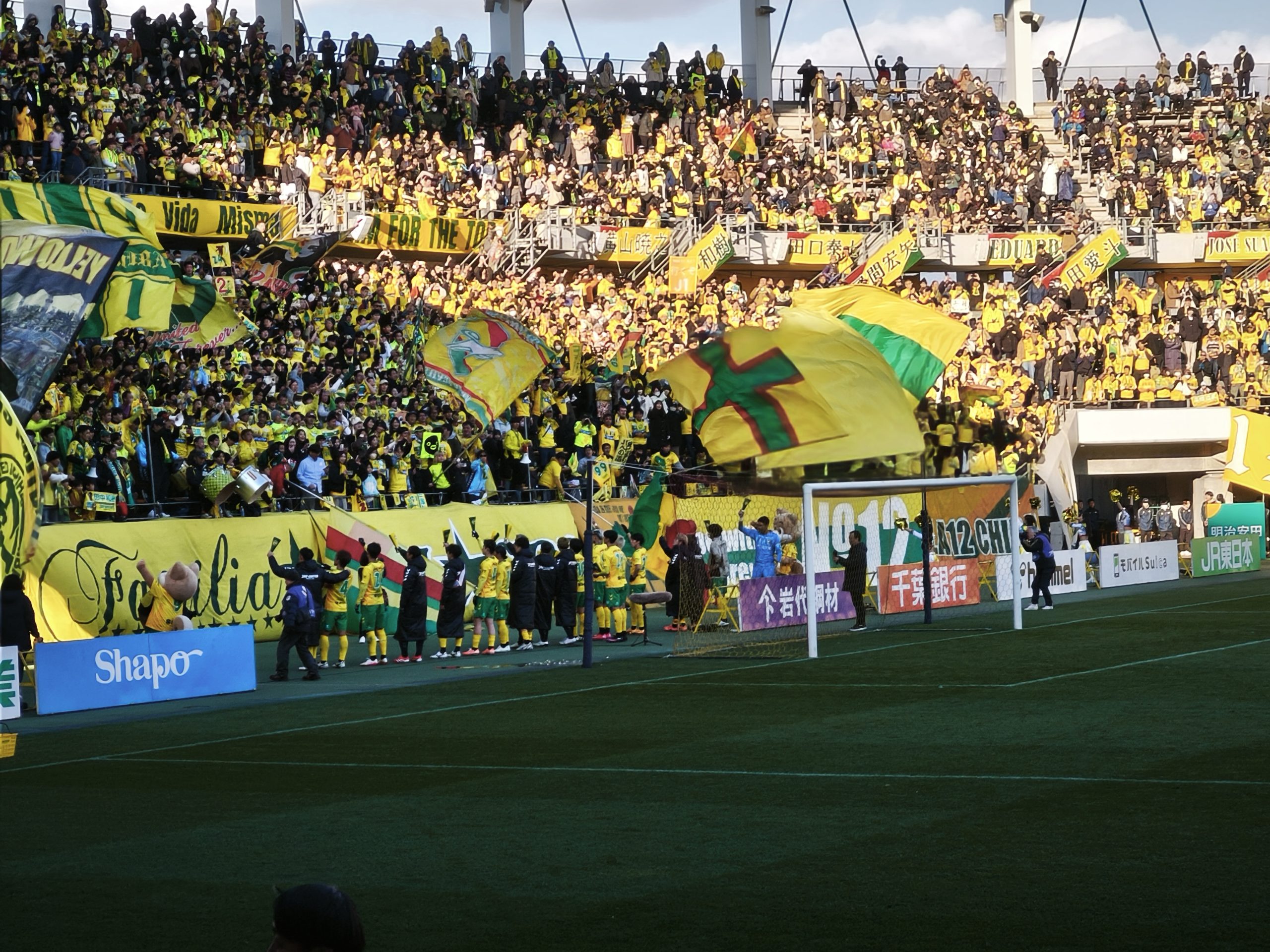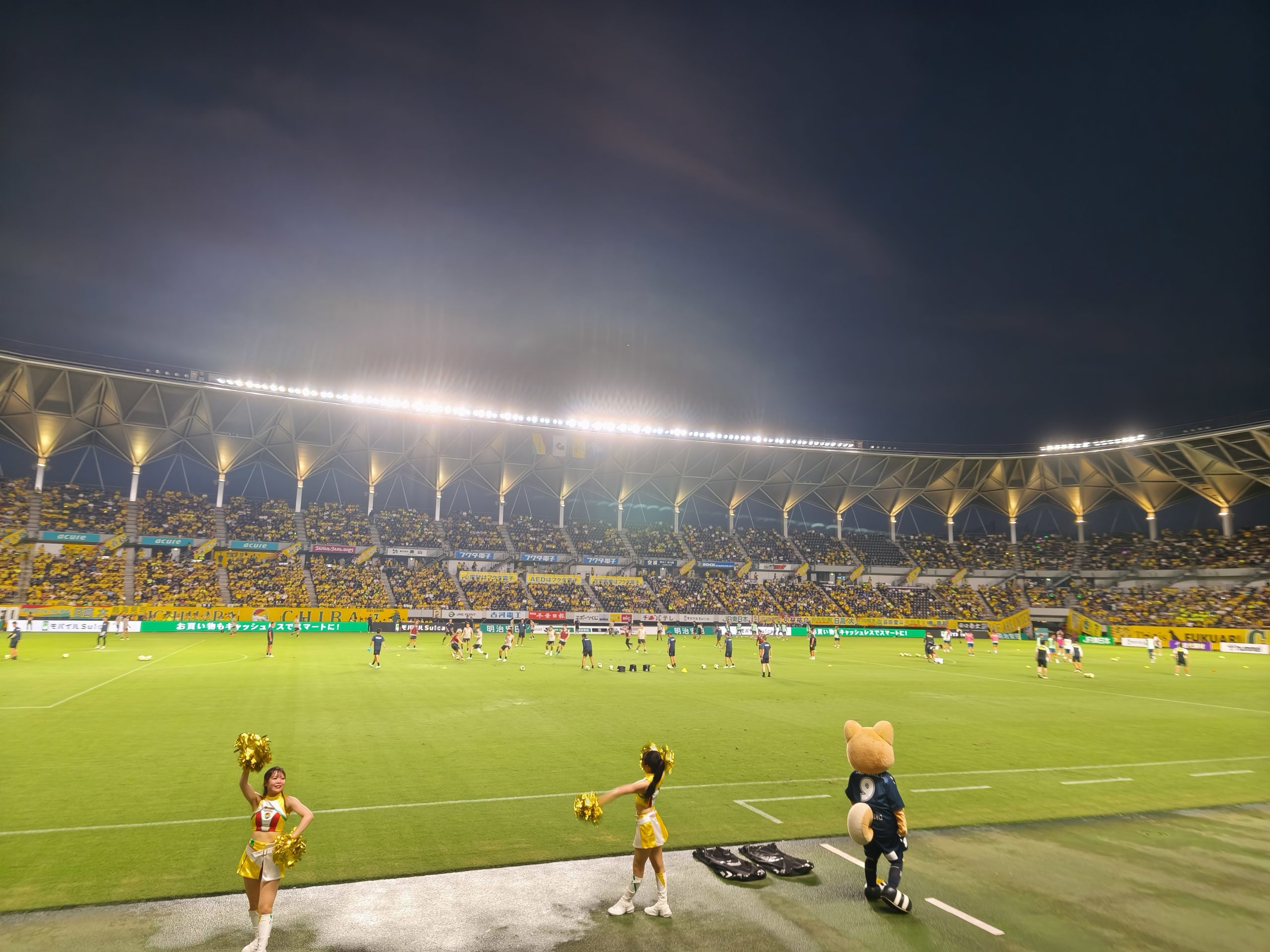 アウェイエリア以外の席では、ホーム側ゴール裏はもちろんのこと、いつもはまばらなバック席も多くが埋まっており、フクアリは黄色で埋め尽くされていました。