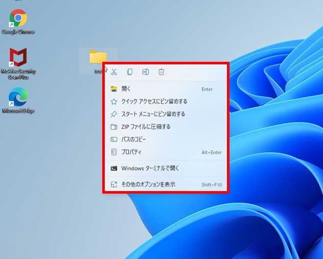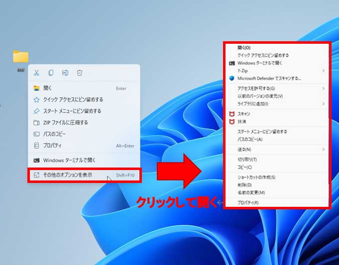④上記の方法で、[Windows11] と同じ様に右クリックでメニューが表示されるようになります。