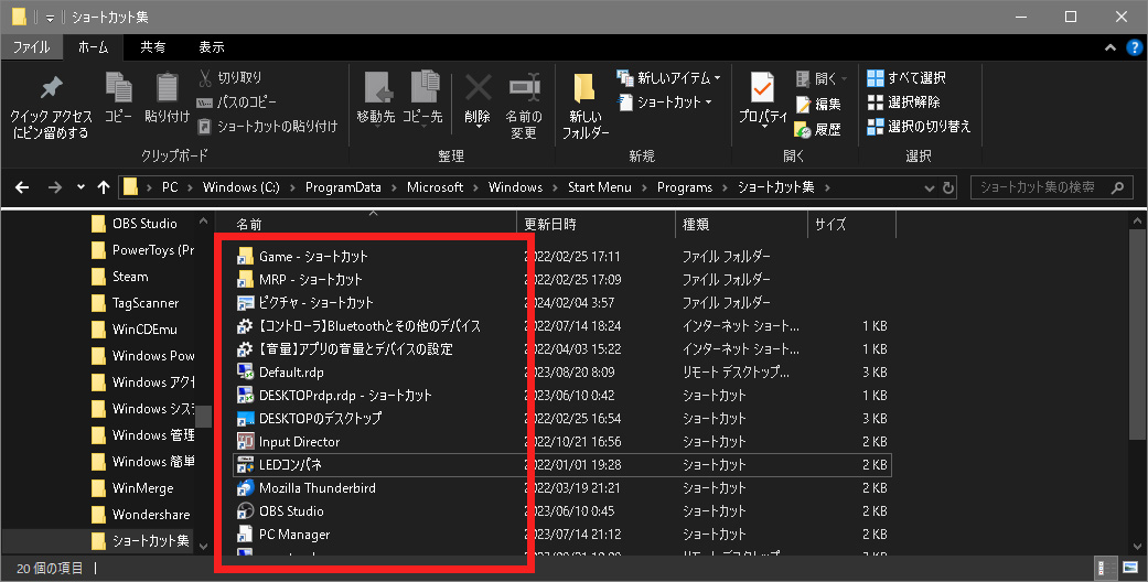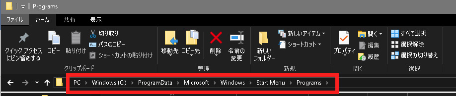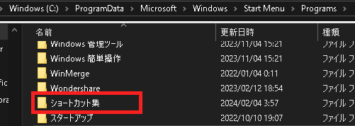 何度も「C:\ProgramData\Microsoft\Windows\Start Menu\Programs」に遷移するのが、大変です。