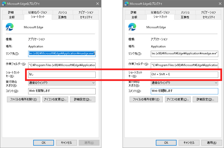 Ctrl + Shift + E → Microsoft Edgeブラウザが起動