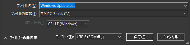 バッチの配置場所は覚えやすく、また格納する場所によっては機能しない場合があるため、Cドライブにフォルダを新規作成して、自作バッチを格納しておくことをおすすめします。