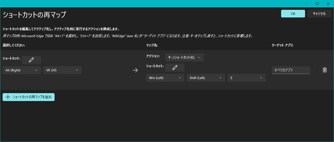 さらに「Keyboard Manager」はショートカットキーも変更できます。